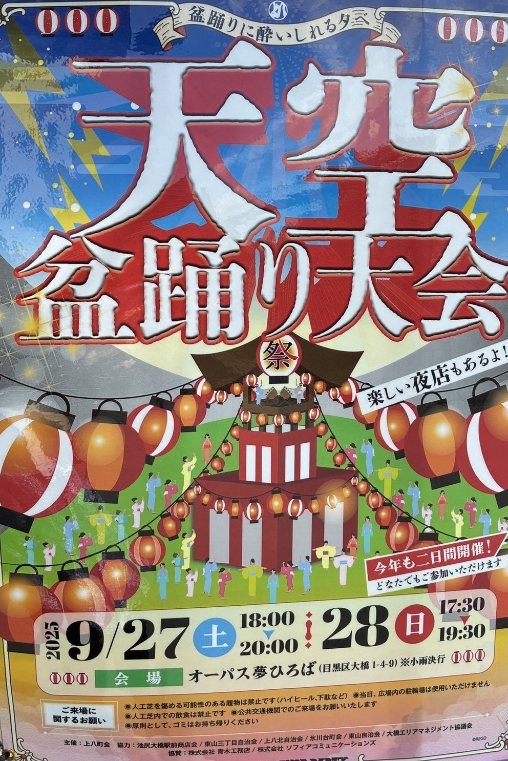 9/27 17:00-20:00 *雨天時は、28(日)開催 台東区立田原小学校 銀座線「田原町」・都営浅草線「浅草」 東京都台東区雷門1-5-14 田原de盆踊り(@tawarade)さん / X 田原 de 盆踊り実行委員会 |
