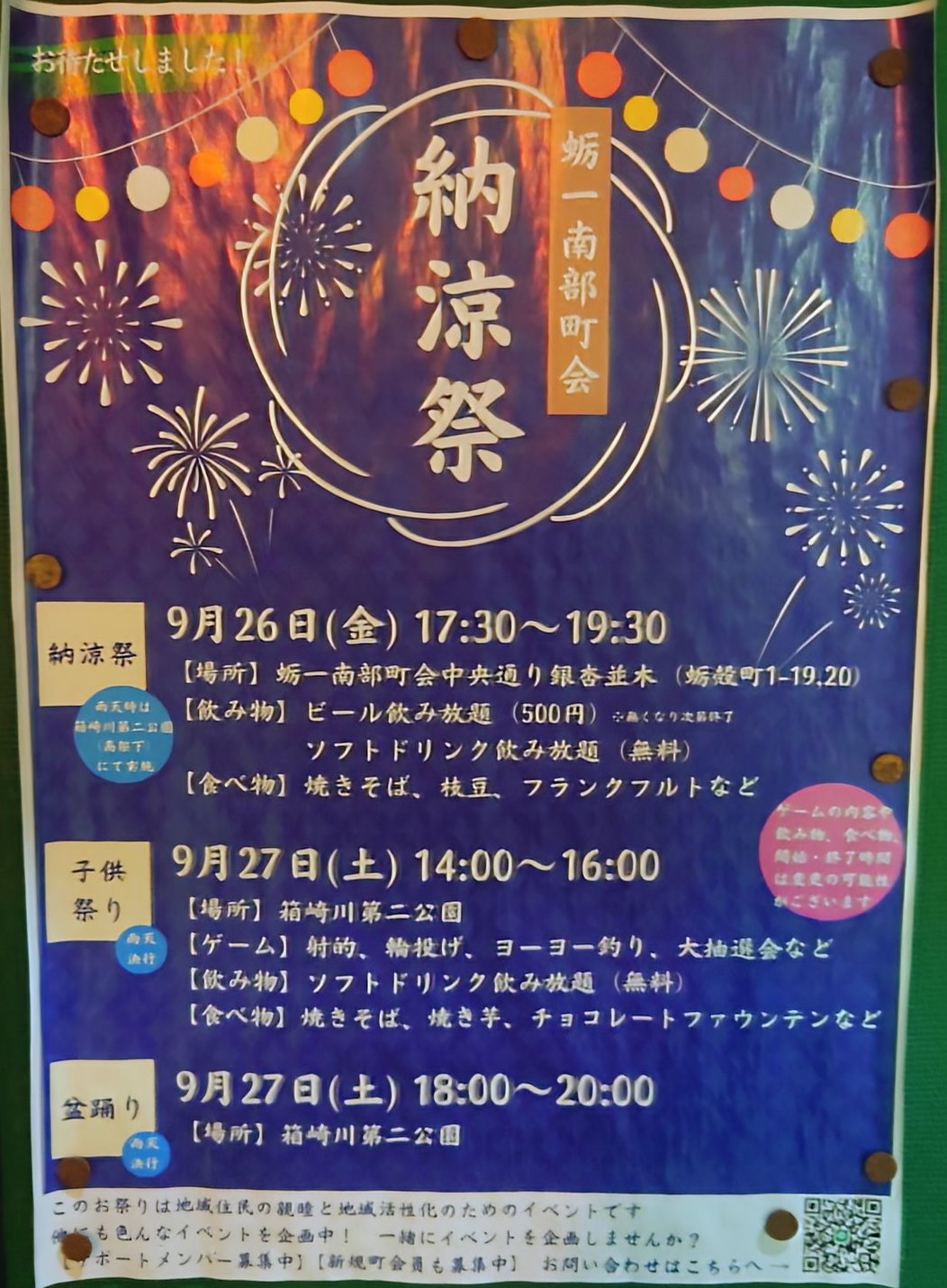9/27 18:00-20:00 箱崎川第二公園 半蔵門線「水天宮」・日比谷線「茅場町」 東京都中央区日本橋箱崎町3-1 蛎1南部町会青年部 蛎一南部町会 |